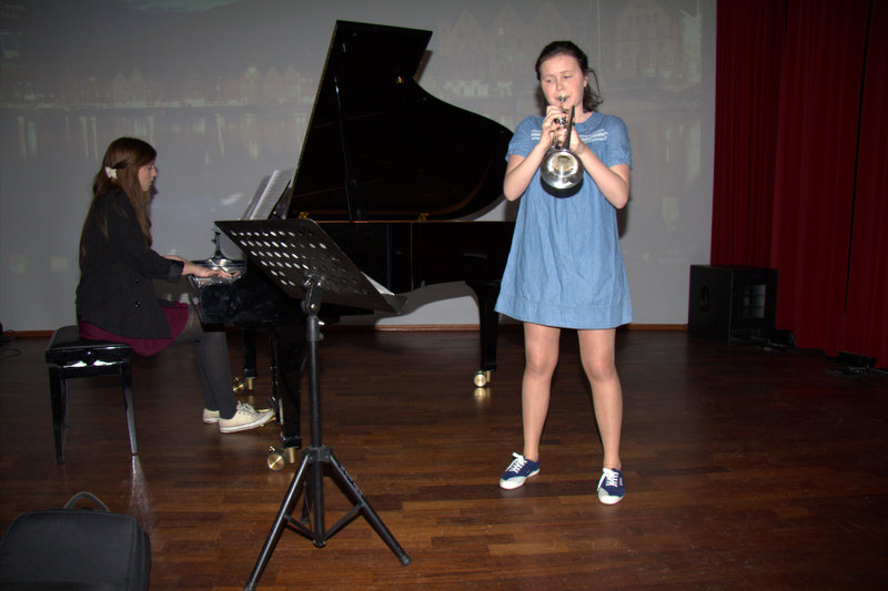 Musikalsk åpning ved Edel (klaver) og Ingrid (trompet) fra Langhaugen skole.